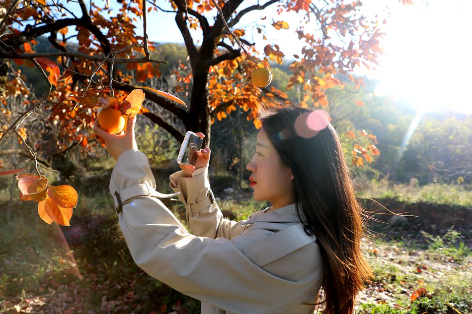 10月28日,记者来到柿子园,一个个橘红色的柿子犹如一盏盏红灯笼挂满枝头,为深秋的村庄增添了一道亮丽的风景。每天慕名来拍照参观的人数高达上百人,游客们三五成群的在柿子园里拍照打卡,沐浴在秋日阳光下,祈愿着“柿柿”如意、心想“柿”成。