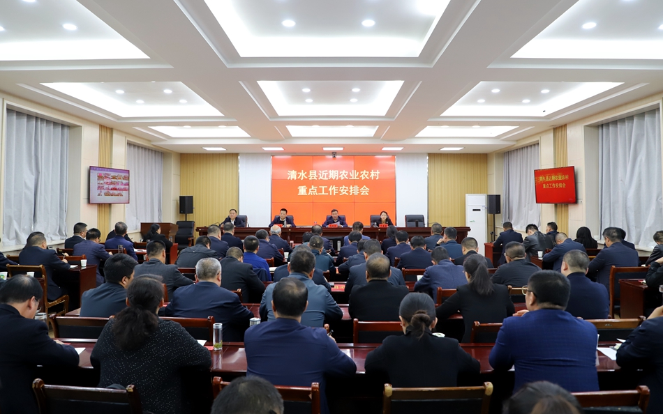 11月3日,清水县召开近期农业农村重点工作安排会,贯彻落实市委农村工作领导小组会议精神,安排部署全县近期农业农村重点工作。市政协副主席、清水县委书记马越垠出席会议并讲话。李菊霞、丁旺喜等四大组织在家领导出席会议。