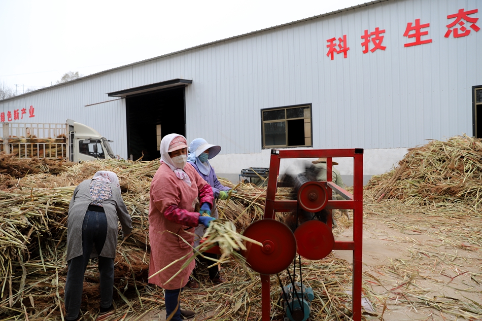 土门镇高粱种植与笤帚加工产业园、现代农产品电商及冷链物流建设项目是土门镇镇政府招商引进企业,现已投入运营使用。走进笤帚加工产业园,现场一片繁忙景象,工人们在束草捋芒、刷胶打结、缝纫,一道道工序伴随着工人们娴熟地操作,一束束芒草变成了一把把笤帚成品。