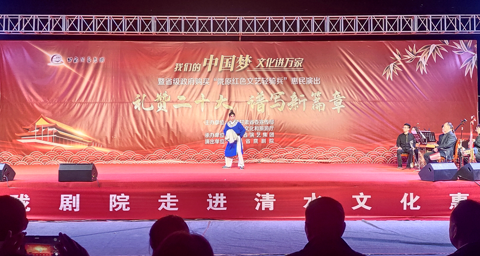 近年来,清水县不断加强基层文化阵地建设,实施四大工程建设,目前已初步形成了县有博物馆、文化馆、图书馆、大剧院、影视城,乡镇都有综合文化站,村村都有综合文化服务中心、农家书屋的县乡村三级公共文化服务体系,有效实现了县、乡、村文化信息资源共享。同时还建立了一批农民文化团队,利用农闲时节开展团体交流汇演,让农民登上自己的“文化舞台”,更好地为群众的美好生活赋能。
