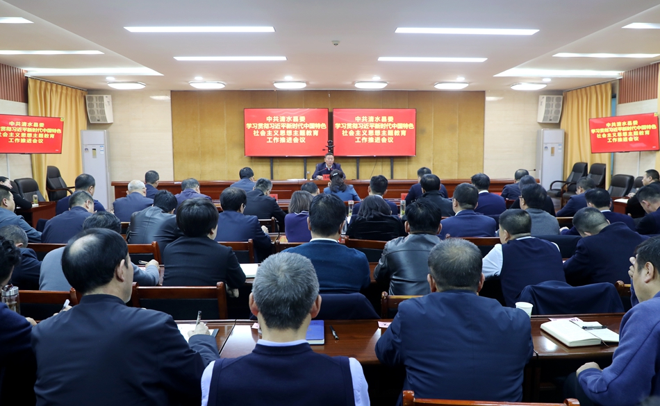 11月17日,清水县学习贯彻习近平新时代中国特色社会主义思想主题教育工作推进会议召开,市政协副主席、县委书记、县委主题教育领导小组组长马越垠出席并讲话。他强调,要深入学习贯彻习近平总书记关于主题教育系列重要讲话和重要指示批示精神,全面落实中央和省委、市委部署要求,重实效、强实干、抓落实,以更高站位、更实举措、更严作风全力推动主题教育走深走实。