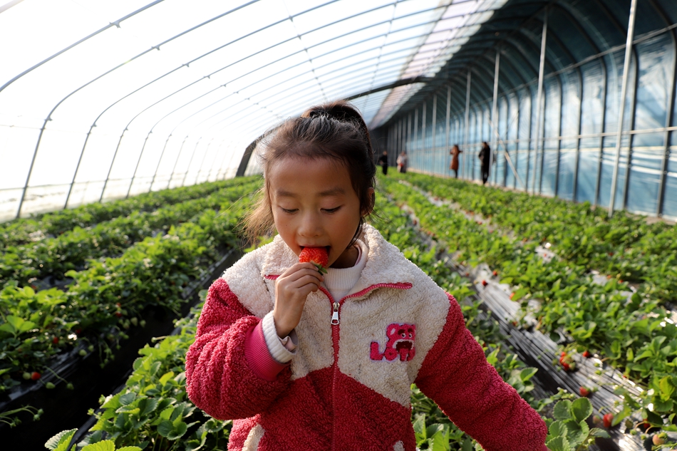 1月8日,记者走进清水县红堡镇草莓大棚基地,室外寒气逼人,棚内温暖如春。来草莓园采摘的顾客手提篮子穿梭其间,股股甜美的草莓香味扑面而来,放眼望去,一簇簇翠绿的植株间,一个个红似小灯笼的草莓缀满枝头,绯红鲜亮,让人垂涎欲滴。