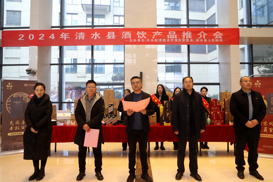 1月10日,清水县在国家级天水经济技术开发区举行酒饮产品推介活动,对天河酒业酒类产品、华盛农业沙棘饮品、兆达农业巧克力食品进行点对点推介销售。清水县委常委、副县长曲俊强出席活动。