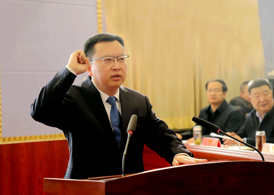 根据法律规定,新任命的代理县长王涛向宪法郑重宣誓。