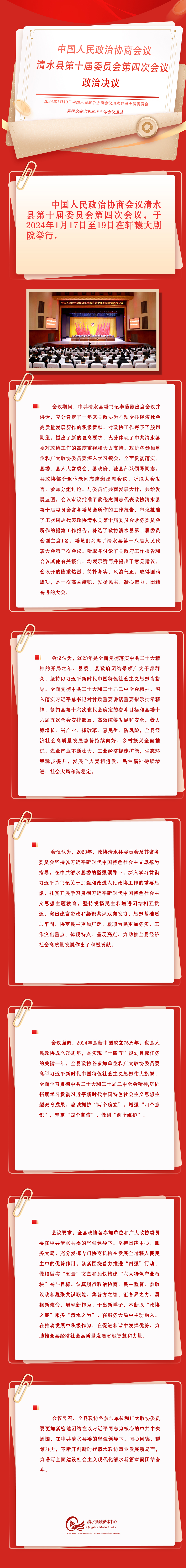 中国人民政治协商会议清水县第十届委员会第四次会议政治决议