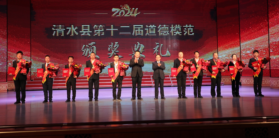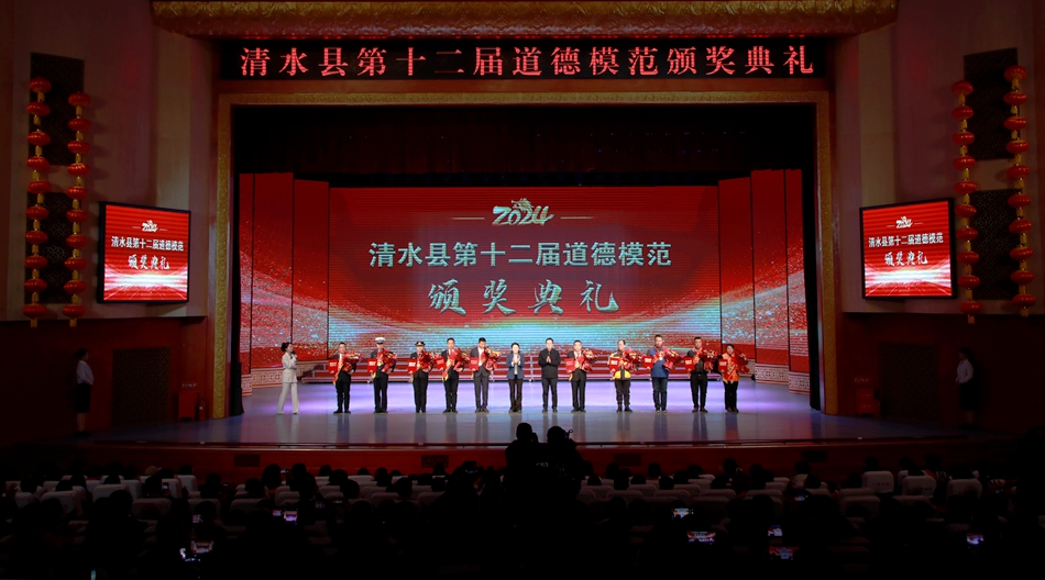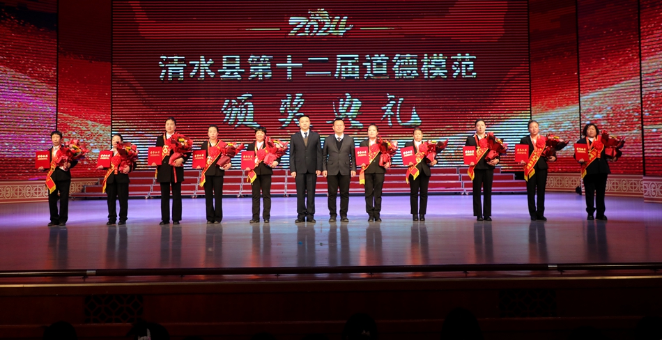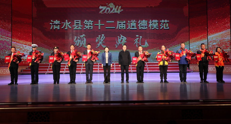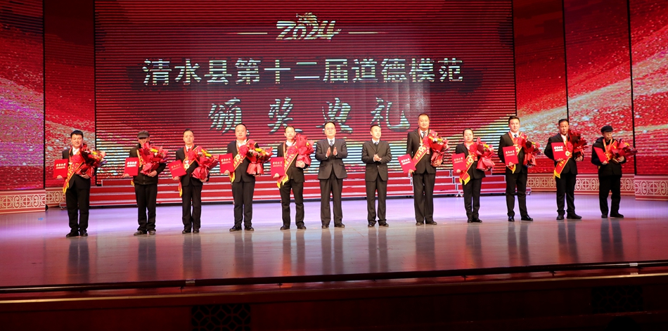 颁奖典礼由清水县精神文明建设指导委员会主办、县委宣传部、县文明办承办、县融媒体中心协办。通过视频短片、现场采访、诵读颁奖词等方式,现场表彰了2023年度各行各业涌现出的敬业奉献、诚实守信、助人为乐、孝老爱亲道德模范,展示了他们的高尚情操。