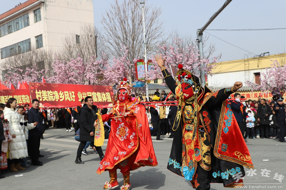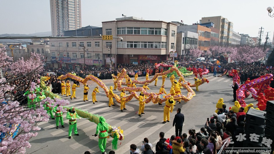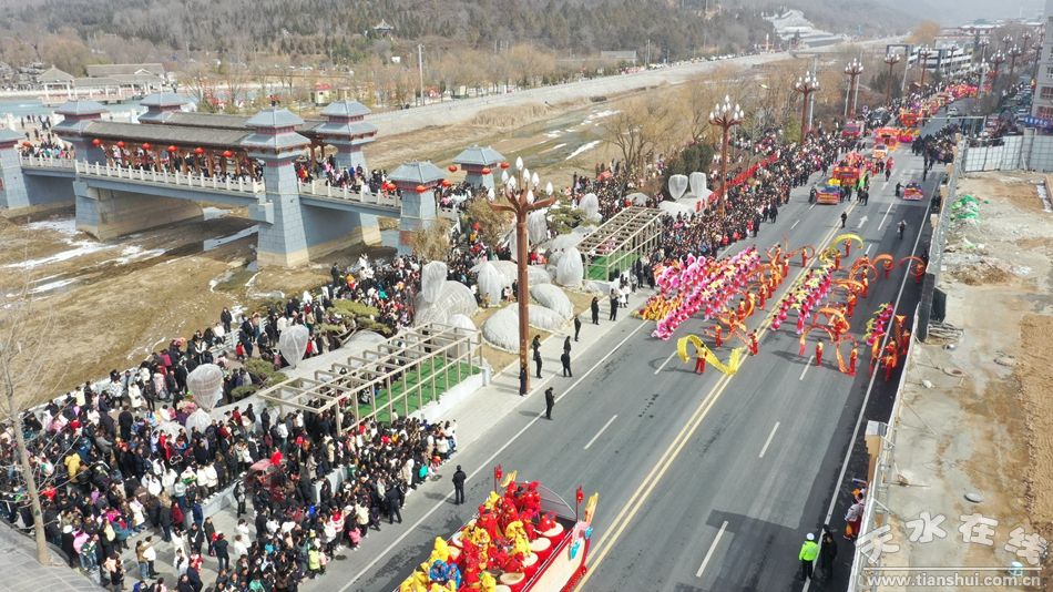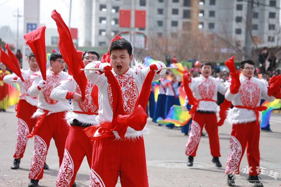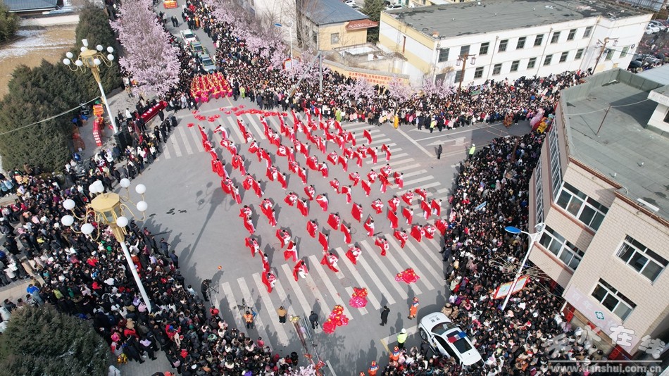 长达四个多小时的社火展演让清水万人空巷,四邻八乡的群众走上街头观看社火表演,锣鼓喧天、人潮人海,把元宵节的气氛推至高潮。