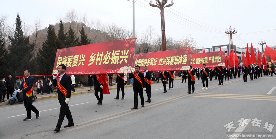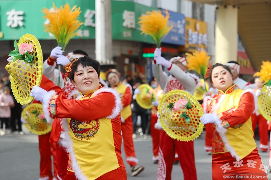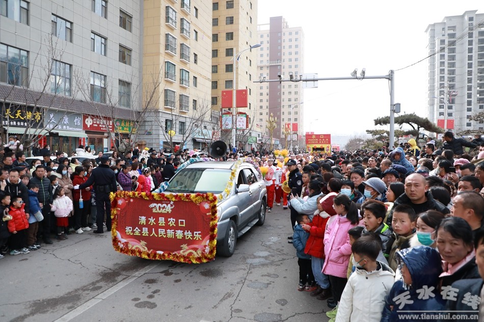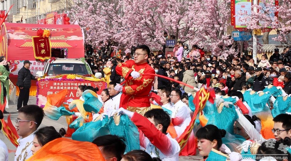 铿锵的锣鼓声,敲出了新年的喜庆,也敲出了向幸福生活再出发的美好祝愿;欢快的秧歌,扭出了对红火日子的热情赞美,舞出了对美好生活的无限向往;传统的舞龙舞狮活灵活现、惟妙惟肖,表达了轩辕儿女迎新春、庆盛世的美好愿景;一辆辆彩车展示了全县广大干部群众奋发有为,昂扬向上的精神风貌,寓意着清水儿女坚定信心、同心同德、埋头苦干、奋勇前进,再创辉煌的信心和决心;扎满彩带的划旱船表演,姑娘“坐”在船里和艄公对舞,表达了人民群众对幸福生活的感恩。一个个精彩的节目充分展现了全县经济发展、社会稳定、文化繁荣、人民生活幸福安康的和谐景象。
