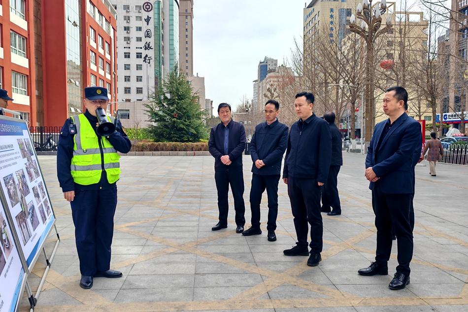考察组一行深入岷山市场、安居小区、智慧城管指挥中心、天水古城、摩尔街、马跑泉公园、火车站广场等地,通过实地考察、听取汇报、询问交流、观看专题片等方式,详细了解了秦州区和麦积区城市精细化管理工作取得的成效。