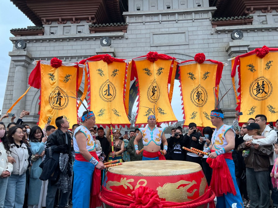 大鼓如将,一鼓震天,小鼓如兵,鼓声密集。40名清水汉子赤着半边臂膀,身随令动,踩着豪迈的舞步双手并用叩击挂在身前的小鼓和拿在手中的铜镲,20位身着虎皮裙的姑娘们手持龙纹平鼓,敲击震动鼓面仿若龙身游摆,高昂的鼓声和清亮的镲声节律相和,乐声美妙、空灵悠远,一曲毕掌声雷动,叫好欢呼声不绝于耳。