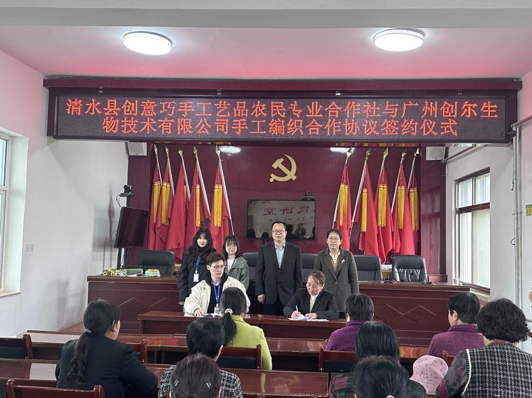 在随后举行的订单协议签约仪式上,土门镇全面介绍了妇女手工编织品“炕头经济”发展理念、“1+N”师傅带徒培养模式、“电商+线下”销售渠道等优势模块,获得考察团一致好评。双方现场签订了供销合作协议,计划通过订单销售、市场推广、技术支持与培训的方式,提升土门镇巧手妇女手工编织工艺品市场影响力,并利用广州创尔公司成熟的销售网络和市场营销经验,扩大土门镇手工编织工艺品销售范围,保障编织产品销量稳步上升。