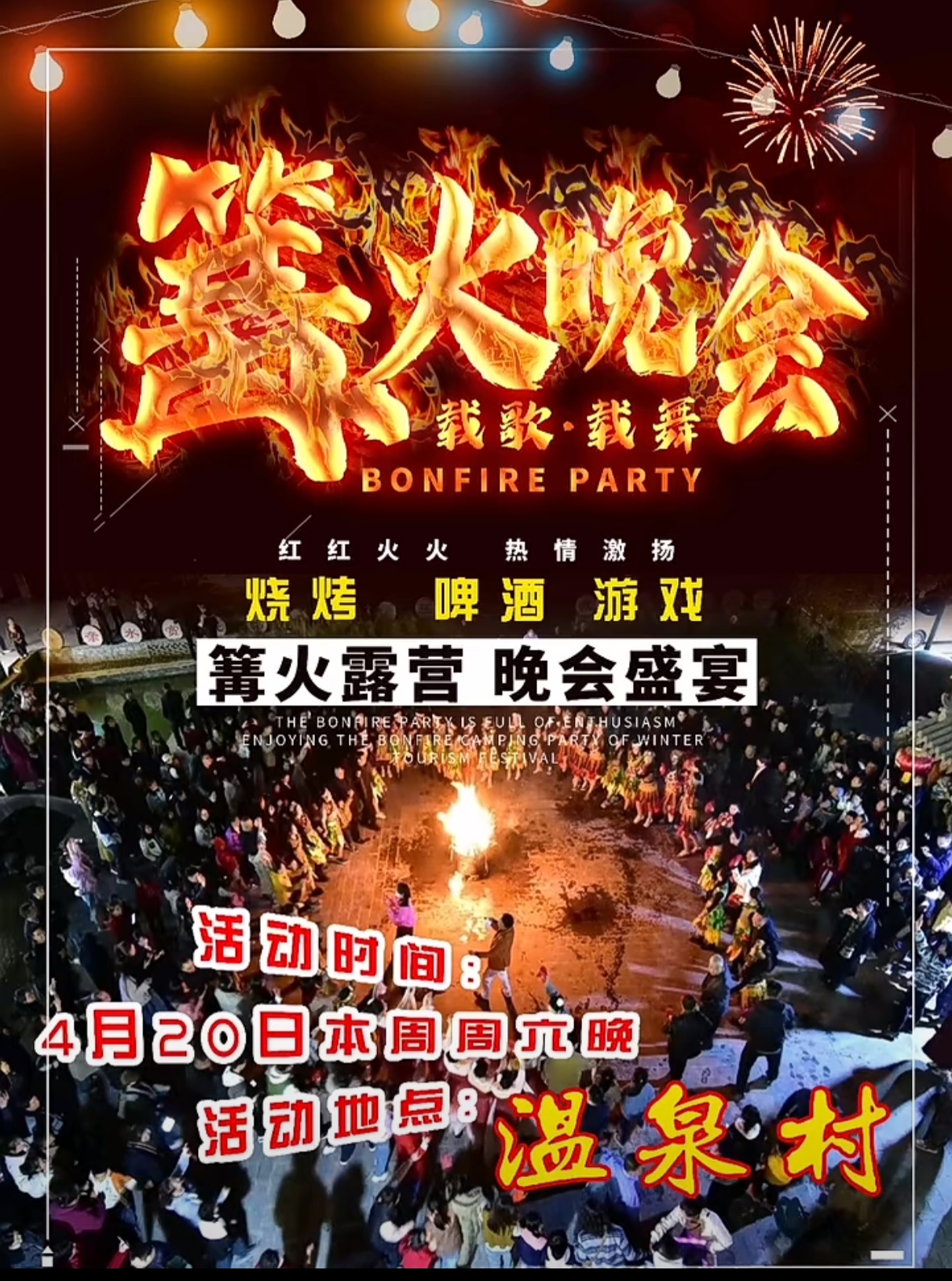 【海报】4月20日晚八点 温泉村篝火露营 邀您赴晚会盛宴