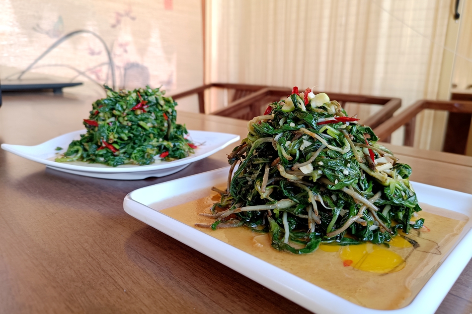时至正午,农家乐迎来的游客越来越多。酸爽可口的浆水面、鲜嫩青翠的凉拌时蔬等陆续上桌,色香味俱全的乡土特色美食勾得游客食指大动,纷纷举箸夹菜,气氛热闹非凡。