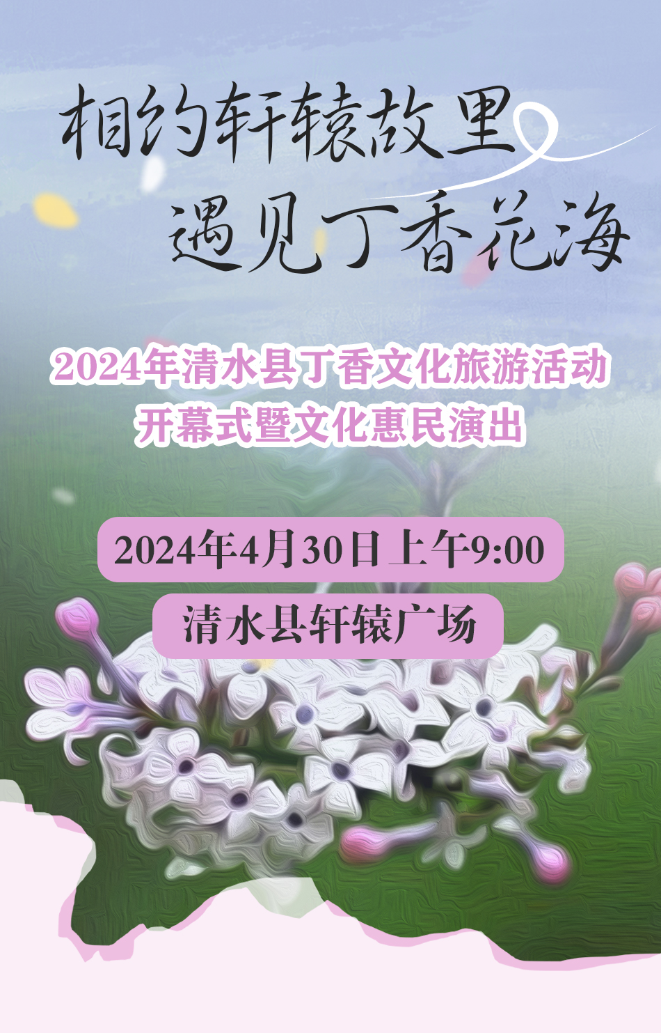 海报 | 2024年清水县丁香文化旅游活动开幕式暨文化惠民演出