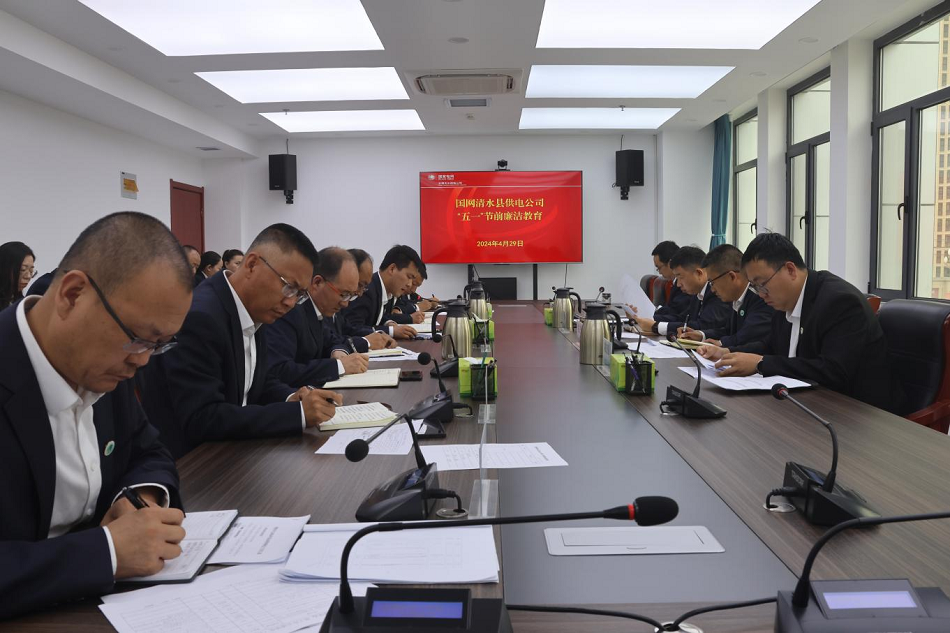 “五一”将至,为持续巩固拓展公司作风建设成果,切实营造风清气正的节日氛围,4月29日,国网清水县供电公司开展节前党风廉政警示教育活动,敲响防止“小微腐败”警钟,确保干部职工廉洁过节。