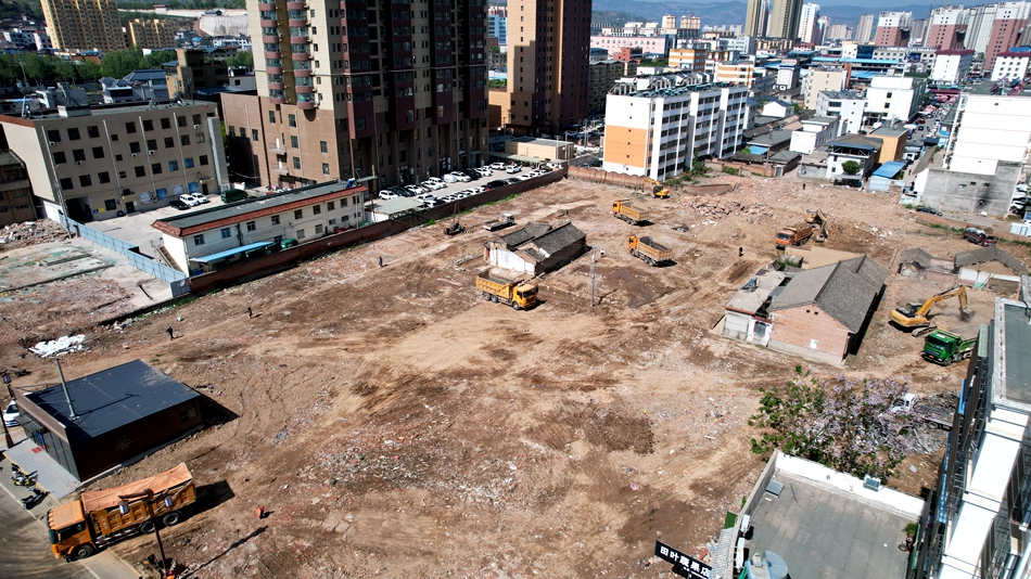 来到中山华庭片区二期项目施工现场,同意拆除签订合同的户已全部拆除,数辆大型挖掘机正在清理场地,工人们分工明确、干劲十足,各项工作有序进行。
