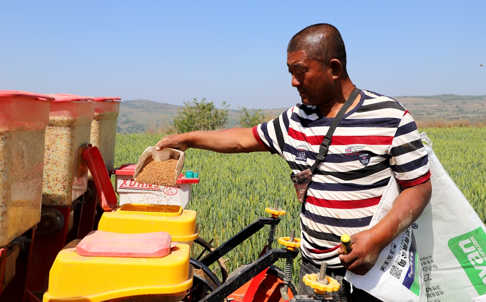 走进土门镇高庙村高标准农田,伴随着阵阵机械的轰鸣声,大型旋耕机在地里来回穿梭,进行第二轮翻犁,播种机紧随其后将一粒粒高粱种播种到地里,田间地头满满的“科技范”。