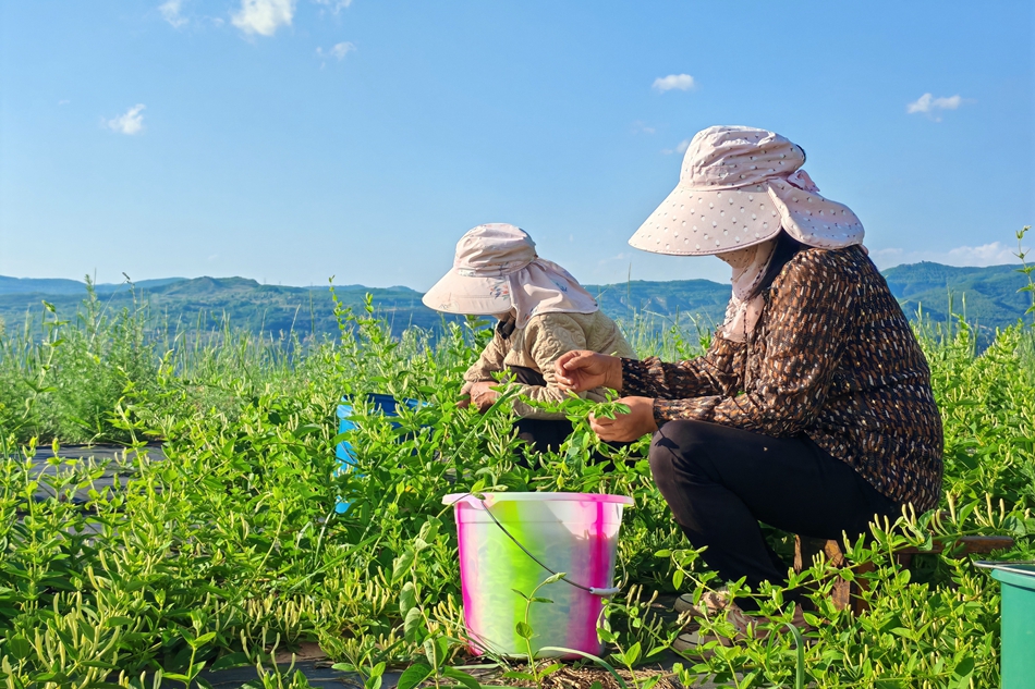 金银花的种植不仅增加了村民的收入,还让群众在家门口就业。马沟村村民顿彩花长期在种植基地务工,这几天金银花迎来了丰收,她每天一大早就来采摘金银花。“我每天大约能采20斤,一天能挣100多元。”顿彩花一边麻利地采摘着金银花一边说。