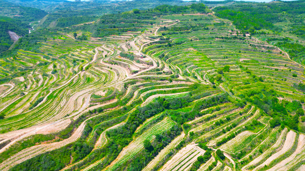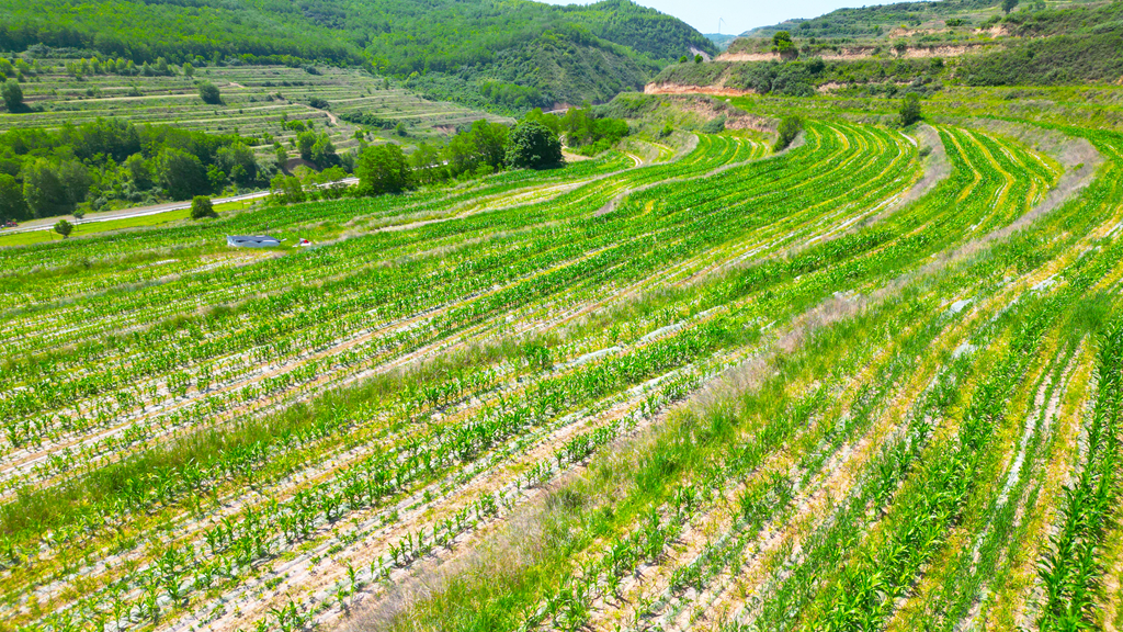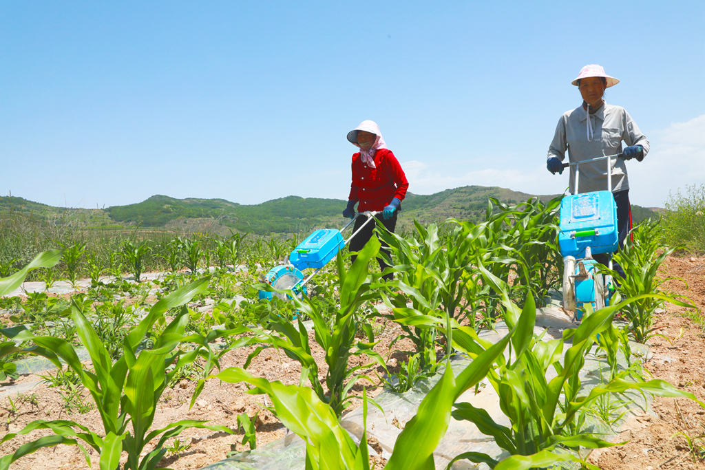 在文寨梁2000亩大豆玉米带状复合种植及饲草玉米种植示范点,翠绿的玉米叶子下一株株大豆苗整齐排列,两种作物间隔种植,农户们正忙着进行除草、施肥。