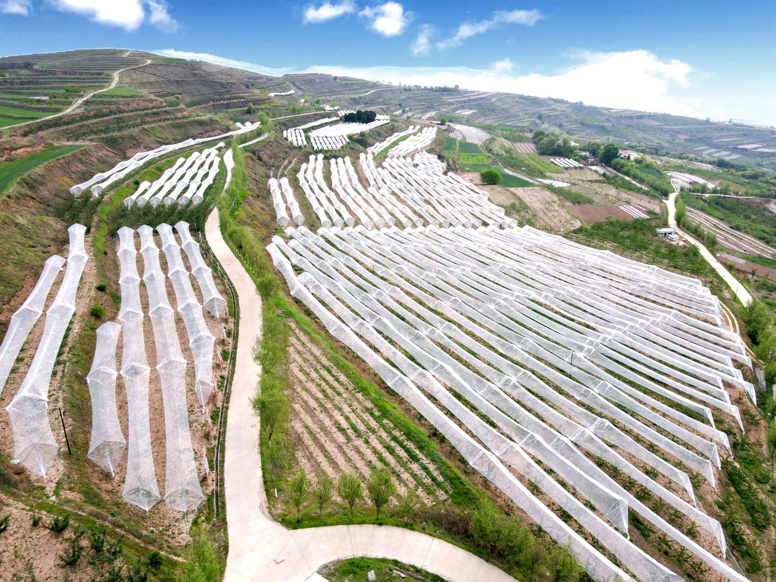 近年来,郭川镇将果园防灾减灾体系建设作为提升果品产业效益、增加群众收入、推进产业振兴的有效抓手,坚持“项目奖补、示范带动、连片建设、分步推进”的总体思路,建成果品防灾减灾设施1340亩(其中防雹网1184亩、防鸟网136亩、多防棚20亩),涉及合作社5家,农户120户,其中通过政策扶持建成集中连片200亩示范点1个、百亩以上示范点5个。落实果品保险13820亩、苹果气象指数保险300亩,切实增强果园抵御自然灾害能力,有效提升苹果产业经济效益。