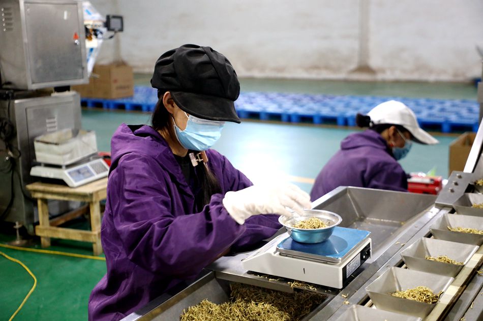 位于白沙镇温泉村的甘肃药鑫中药科技有限责任公司的厂房内同样也是一片忙碌景象,工人们正分工协作,有序地进行中药原材料的分拣,中药材的称重、分装和运输等工作。