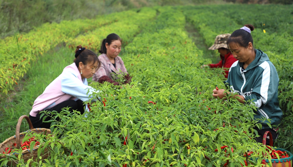 产业带动就业,就业促进增收。由于辣椒采摘主要靠人工,每年辣椒成熟季节,种植基地都会提供大量的务工岗位,随着辣椒种植规模的扩大,村民们也实现了在家门口就能就业增收。