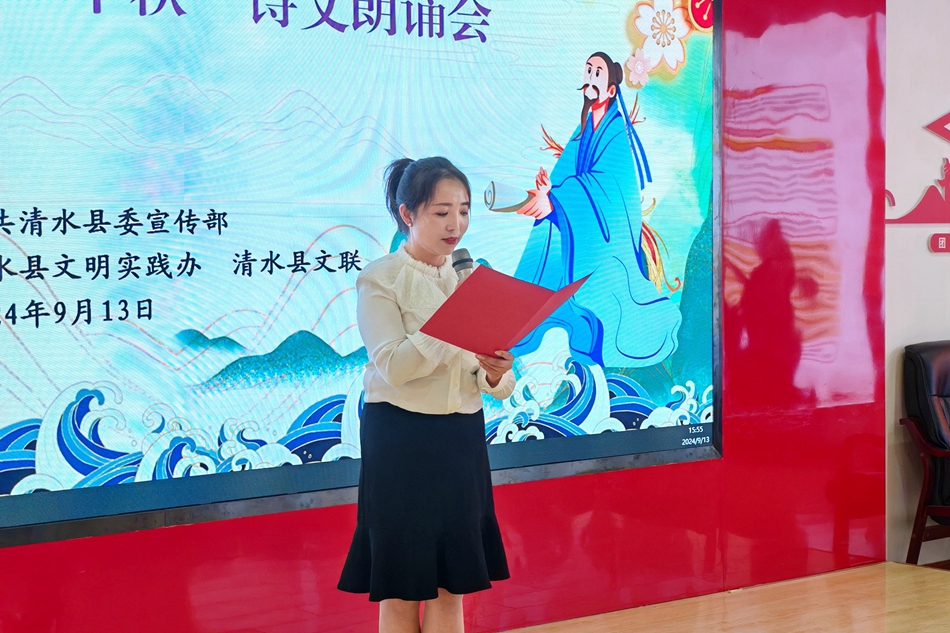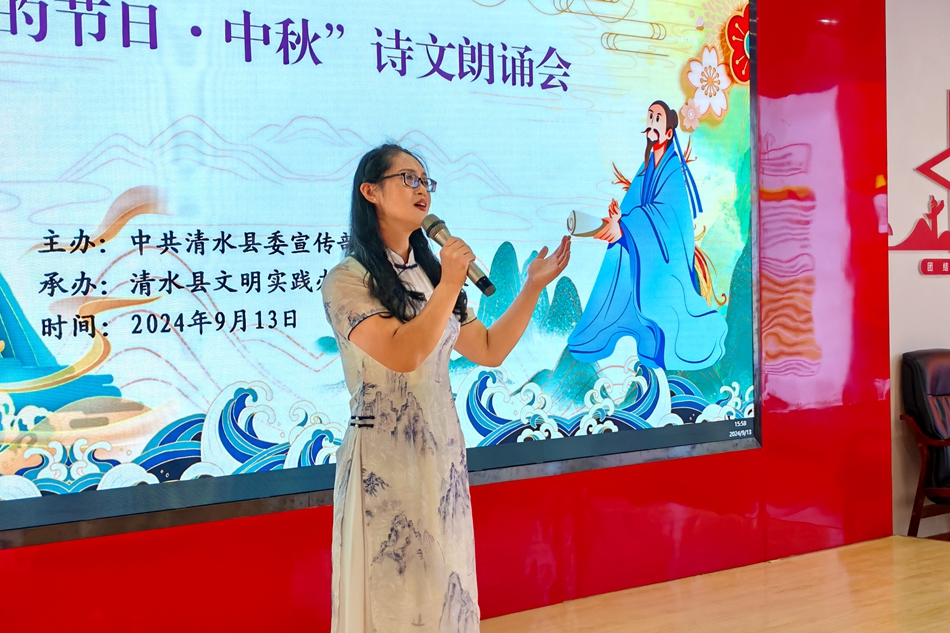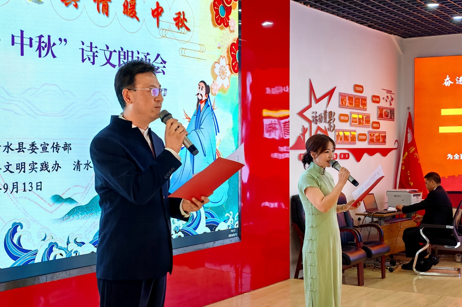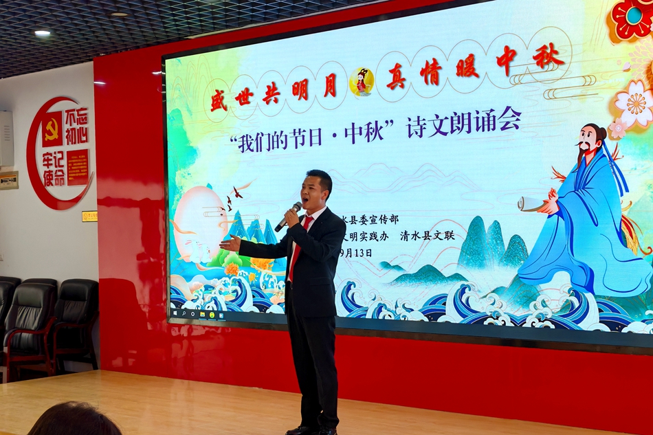 9月13日下午,清水县在新时代文明实践中心举办2024年“盛世共明月真情暖中秋”“我们的节日·中秋”诗文朗诵会。