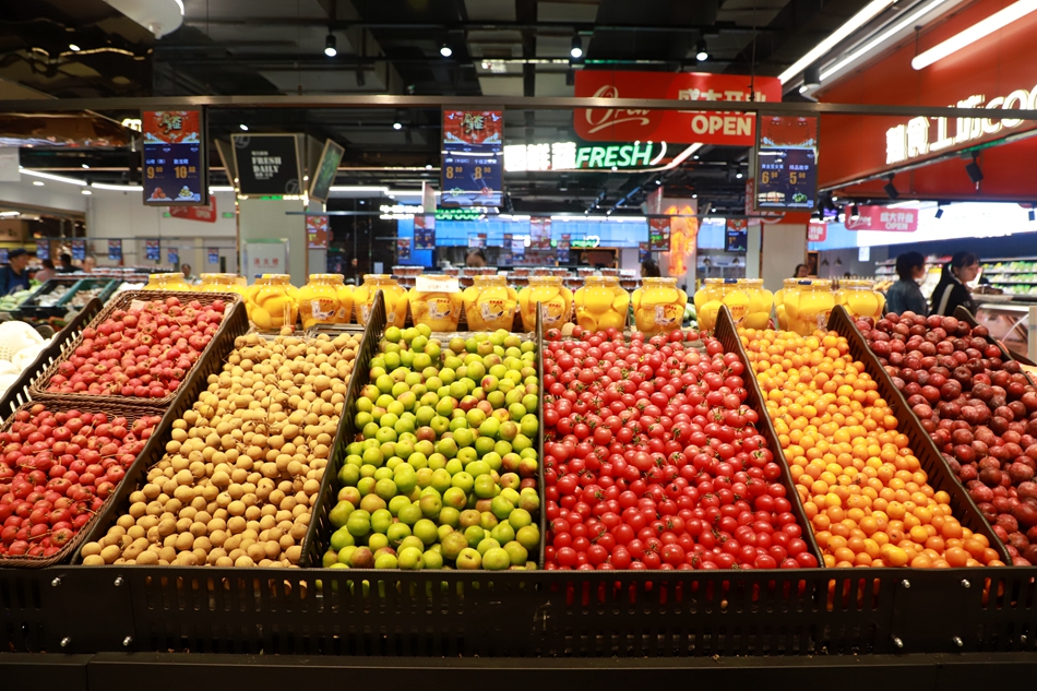 超市内,除了中秋礼品区摆放的各类月饼、点心、酒水饮料等礼盒一应俱全外,新鲜的水果、肉类以及米、面、油等日常用品也格外充足,各类展示台前明码标价、促销活动清晰明了,为消费者提供一个公平、透明的购物环境。