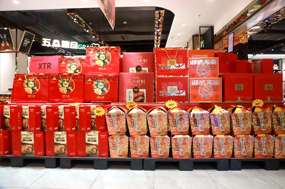 来到新开业的家乐超市,门口的“团圆中秋”宣传标语喜庆注目,营造出浓浓的节日氛围。月饼无疑是节前市民们购物的“团宠”,超市内月饼专区各类广式、苏式月饼品种多样,理货员正在有序整理摆放,不少市民前来挑选采购。