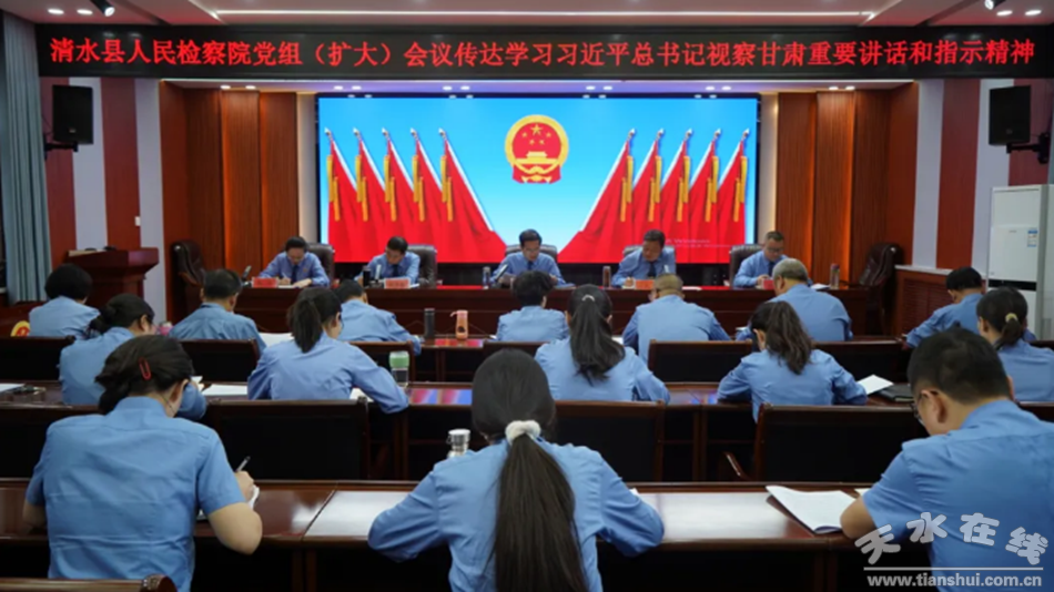 9月20日,清水县人民检察院召开党组(扩大)会议,专题传达学习习近平总书记视察甘肃重要讲话和指示精神、习近平总书记在全面推动黄河流域生态保护和高质量发展座谈会上的重要讲话精神,传达省委、市委、县委常委会(扩大)会议精神和省检察院党组会议、市检察党组(扩大)会议精神,研究部署贯彻落实意见。