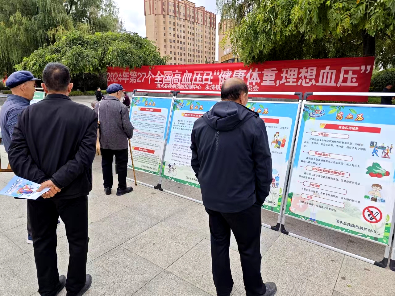 活动现场,疾控中心工作人员悬挂标语横幅、设立健康教育咨询台、摆放宣传展板、发放宣传资料等形式,向参加活动的广大群众耐心细致地讲解高血压防治知识、高血压患者治疗误区以及健康生活方式等知识,并详细解答群众提出的有关疑难问题。