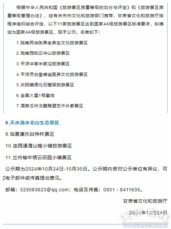 自然之美与人文之美交相辉映,作为全国第六批生态文明建设示范区、国家级全域森林康养试点建设县、省级森林城市的清水,境内山、水、林、草等生态资源和温泉资源丰富,有野生植物330余种、野生保护动物60余种,是名副其实的旅游胜地。森林覆盖率高达80%的北山生态景区,核心区面积896.31亩,先后投资1.2亿元,实施生态治理和保护提升等基础设施项目,推动康养和大健康产业发展,倾力打造文旅农康融合发展示范基地,是清水县认真践行“两山”理念、深入实施黄河流域生态保护和高质量发展战略的务实行动,也是贯彻习近平总书记关于“新时代的乡村振兴要把特色农产品和乡村旅游搞好”重要指示精神、立足县域资源禀赋、推动经济社会高质量发展的具体实践。至目前,景区内游客服务中心、生态停车场、观光步道、导览导视、标识标牌等配套设施完善、旅游功能齐全,打造了以“主题小园”、七彩水滑、亲子乐园,远离城市喧嚣的露营基地,回归质朴田园的谷坨民俗村,品康养美食、尝清水味道的丁香小院等为载体的“赏花观光游”“生态康养游”“亲子研学游”等特色业态。依托景区成功创建全国丁香名县,成立餐饮美食协会、乡村旅游协会,持续加大“引客入清”工作力度,每年定期举办丁香文化旅游活动,常态化开展“非遗展演”等旅游体验活动,2023年接待游客52.6万人次,2024年以来接待游客63.1万人次,带动410多户周边群众年均增收5万余元,有力促进了城乡群众就业增收。