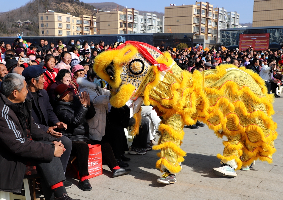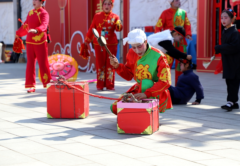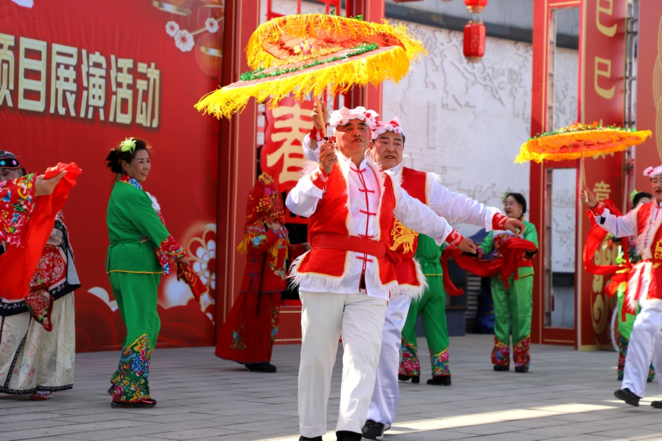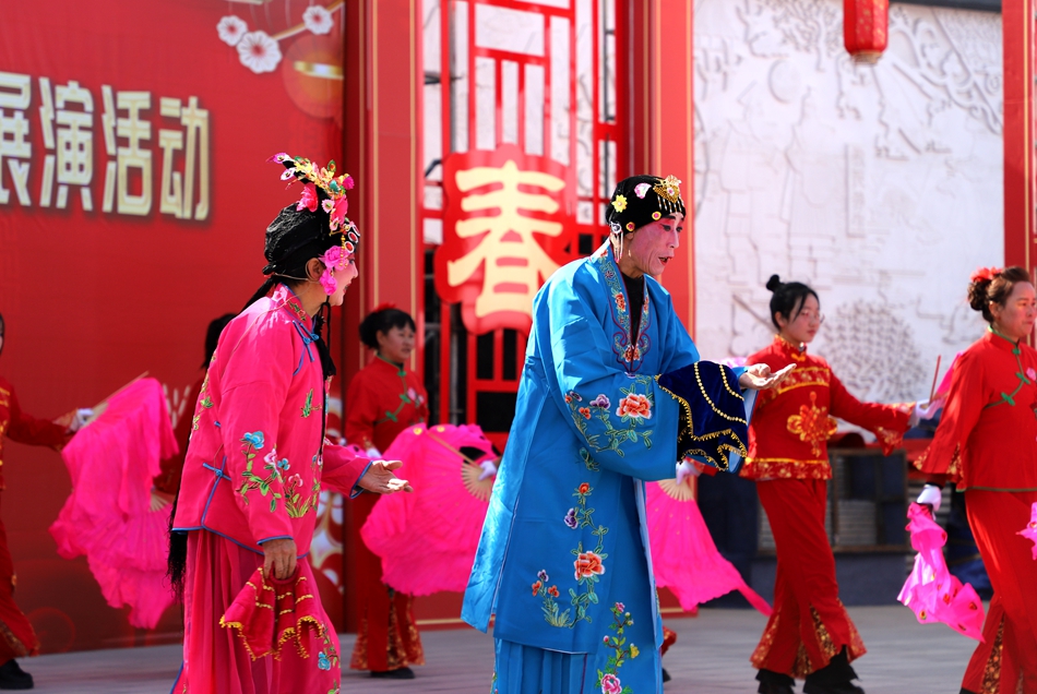 活动现场热闹非凡,轩辕广场锣鼓喧天、人潮涌动。伴着欢快热闹的音乐,演员们身着色彩鲜艳的服装轮番上场,尽情演绎着武术、小曲小调、旱船、跑驴、秧歌、高跷、舞狮等非物质文化遗产节目,精彩绝伦的视听盛宴赢得满堂喝彩,吸引了众多市民游客驻足观赏拍照,感受传统文化魅力,共享非遗之美、共品非遗年味。稠泥河小调《夸夸贾川新变化》、地摊秧歌《保媒引亲》、社火杂耍《二娃摔跤》等节目轮番上演,引得现场掌声不断。