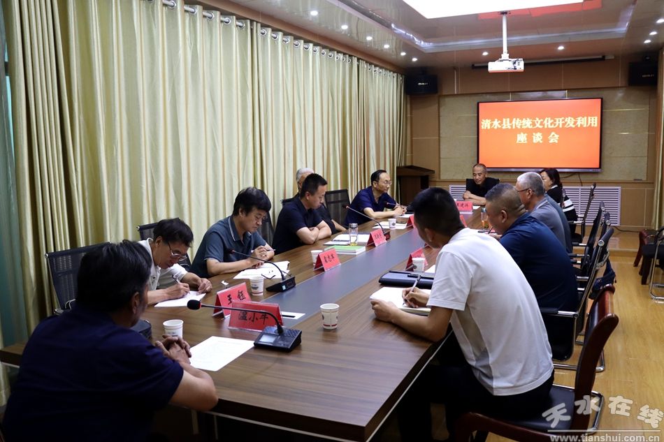 7月10日,清水县召开传统文化开发利用座谈会。县委常委、宣传部部长王新宇主持会议。
