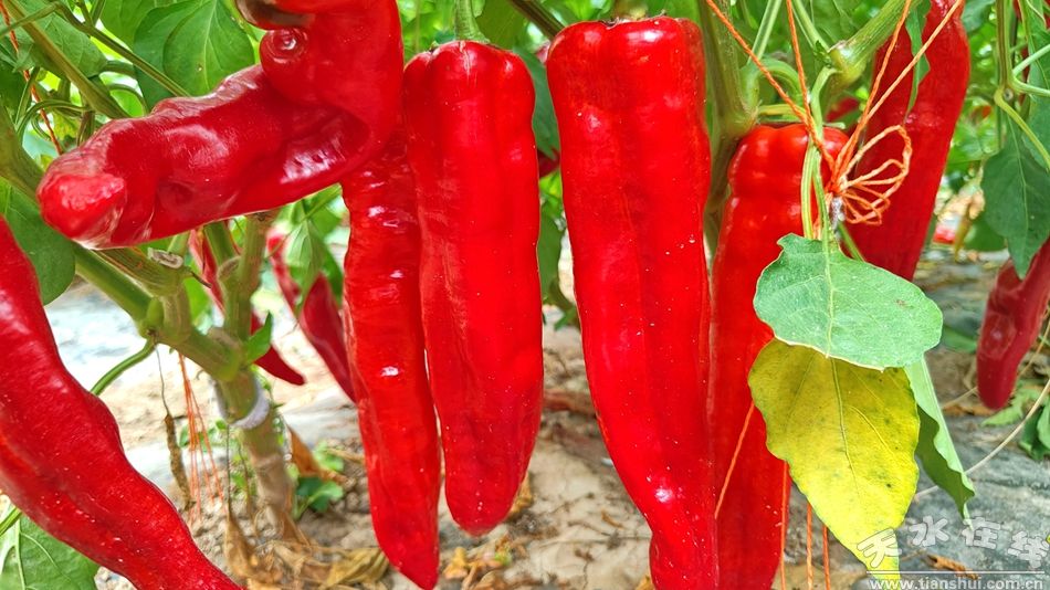 设施大棚内的订单辣椒已全面成熟,红彤彤的辣椒挂满枝头,农户穿梭垄间,灵巧地采摘成熟的辣椒。大棚内的辣椒已签约保价收购,销路无忧。