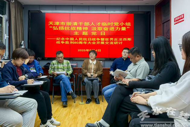 9月4日,天津市援甘清水县临时党小组召开了“弘扬抗战精神汲取奋进力量”主题党日活动,围绕纪念中国人民抗日战争暨世界反法西斯战争胜利80周年大会的精神内涵展开深入学习和交流。全体援派清水县干部人才参加会议,县委常委、副县长张恺杰主持会议。