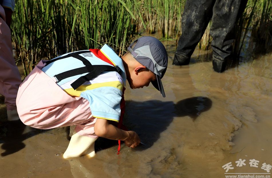 随后的“捕蟹大赛”将活动推向高潮。孩子们穿好“装备”,踏入泥田中,在家长和工作人员的指导下,小心翼翼地翻开石头、拨开稻秧,寻找藏在其中的螃蟹。每当有小朋友抓到一只螃蟹,都会引起一阵欢呼,现场洋溢着欢乐的氛围。