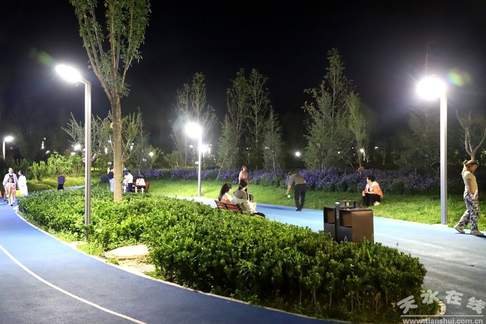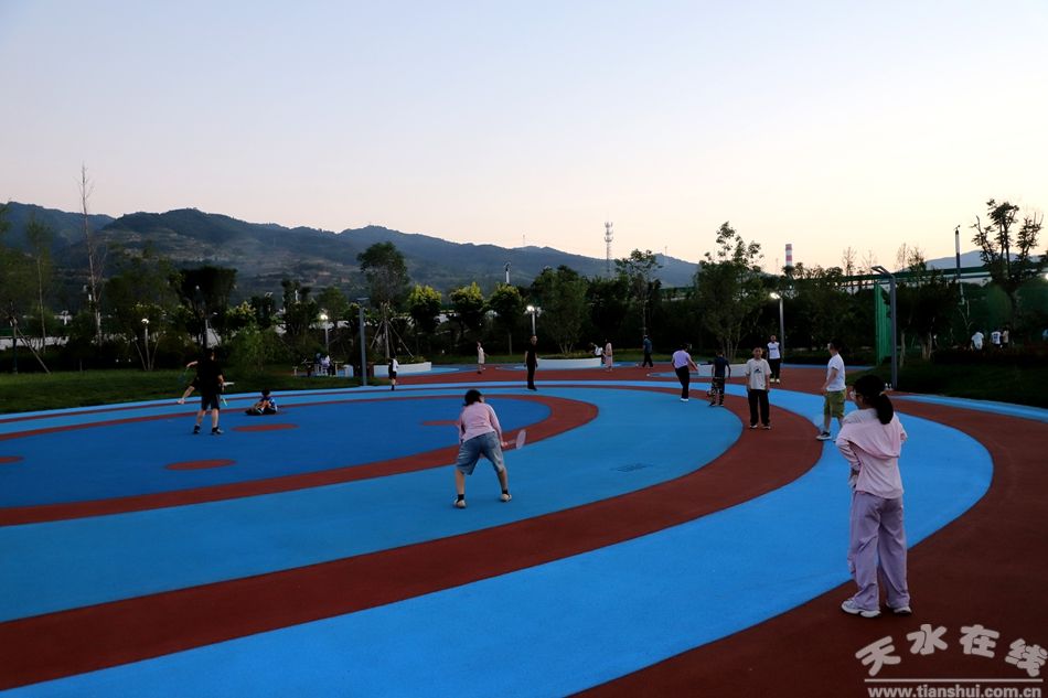 随着夜幕降临,公园里又是一番别样的景象。篮球场上,激烈的比赛正在上演,球员们你争我抢,每一次进球都引得观众阵阵欢呼;羽毛球场地里,轻盈的羽毛球在空中来回穿梭,乒乓球区域同样热闹,小小的乒乓球在球桌上来回跳跃,儿童区天真无邪的笑声回荡在公园上空,家长们则坐在一旁的休息长椅上,看着孩子们玩耍,脸上洋溢着幸福的笑容。“我家就在附近,这几天晚上吃完饭我和朋友过来散步、乘凉,公园里环境好、空气好,感觉很舒适,对于我们西城区的居民来说,方便了很多。”市民苏文莉说。