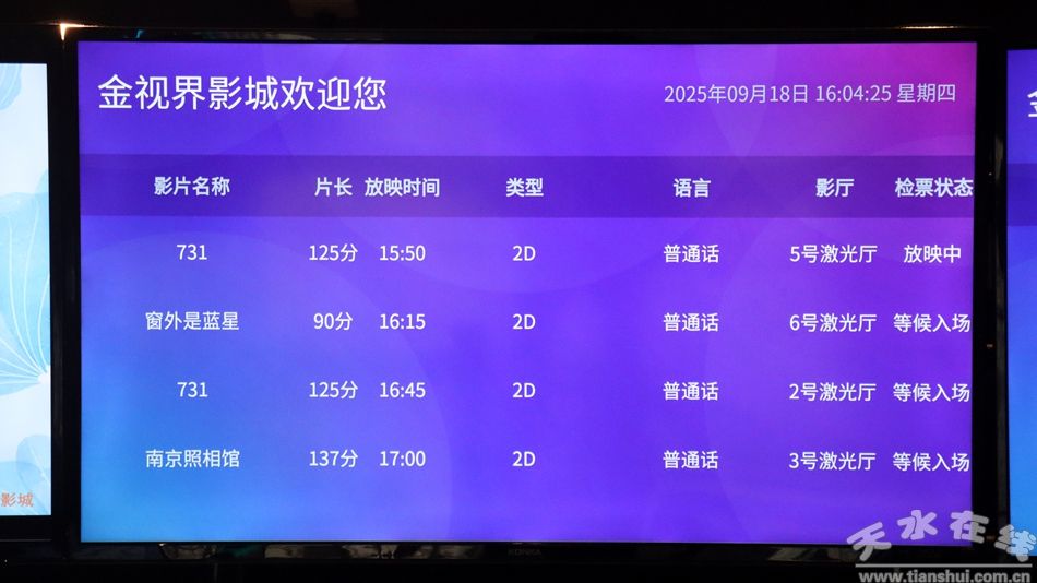 影片上映以来,清水县各影院观影热情持续升温。影院根据观影需求,科学安排场次,部分场次保持较高上座率。清水县金视界影城院线经理郑自强告诉记者:“我们从14号开始播放《窗外是蓝星》这部影片,每天三个厅轮流播放。”