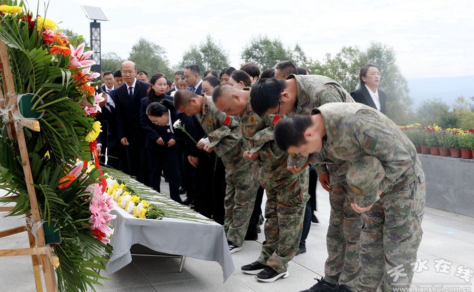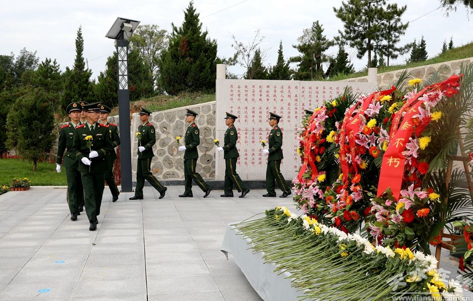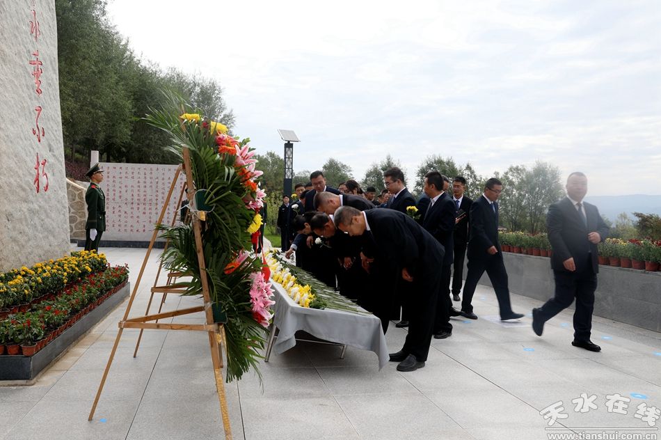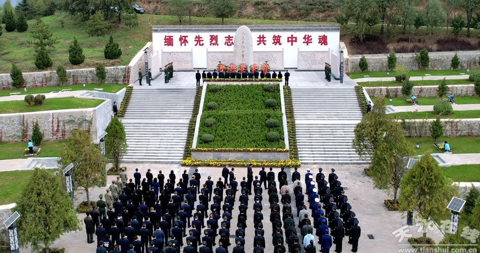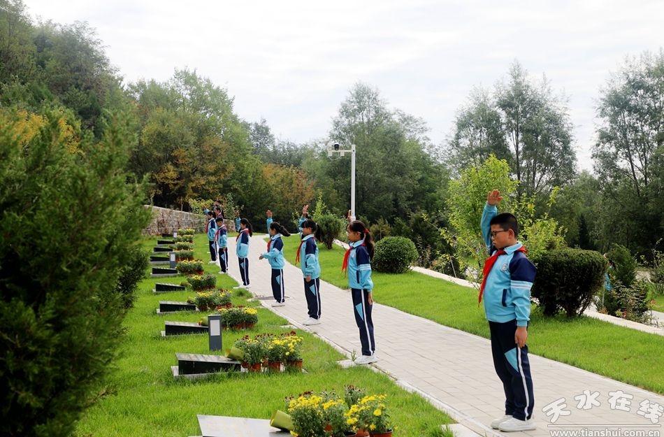 秋风寄哀思,鲜花献英烈。清水县烈士陵园内苍松翠柏环绕,革命烈士纪念碑巍峨耸立,现场静穆庄严,社会各界人士代表整齐列队。10时整,向革命烈士敬献花篮仪式正式开始,全场齐声高唱《中华人民共和国国歌》。国歌唱毕,全场肃立,向革命烈士默哀。默哀毕,手持鲜花的少先队员献唱《我们是共产主义接班人》,向烈士致敬。
