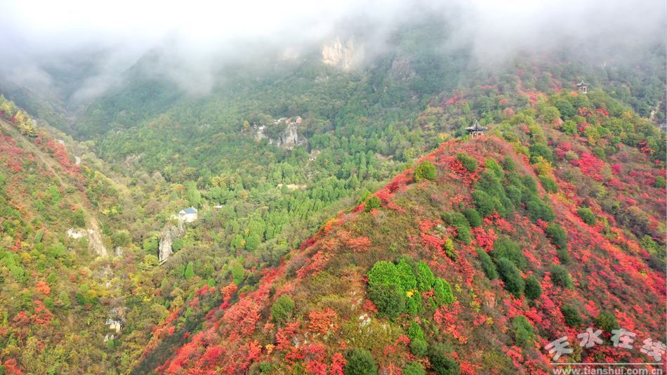 清水县东南28公里处,陇东镇土寨村深藏着一方山水秘境——花石崖,在秋色装点下展现出别样风韵。这里天高云淡、层林尽染,正是国庆中秋“双节”假期寻幽访古的绝佳去处。