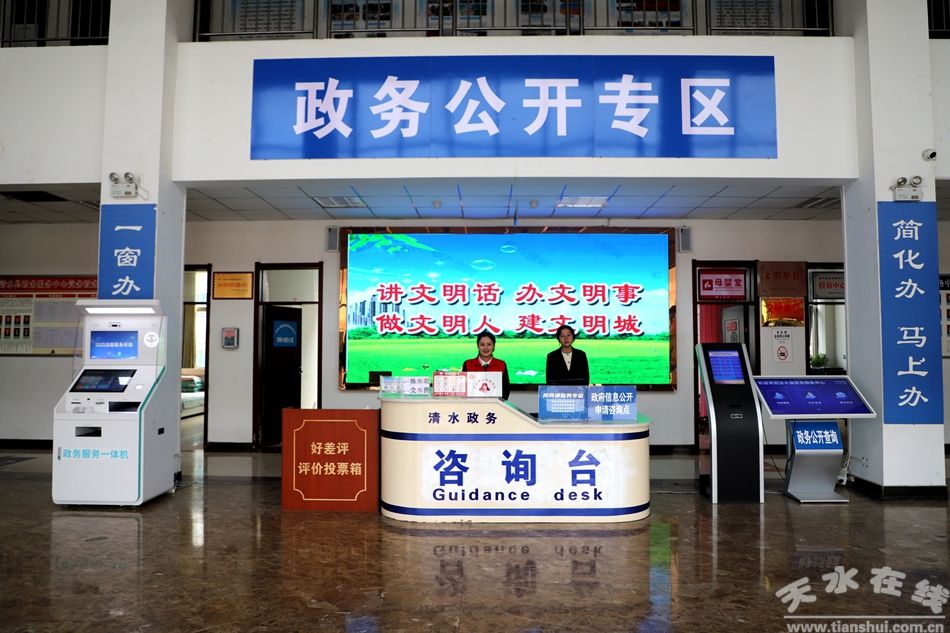 走进清水县政务服务中心大厅,宽敞明亮、整洁有序、工作人员着装整洁,统一佩戴工作牌,群众井然有序排队等待办理业务;在大门入口处的咨询导办区,工作人员和志愿者向前来咨询业务、办理事项的群众一一解答疑问,各个服务窗口热心周到的为群众服务,满足办事群众的各类需求,切实提升办事群众体验感。