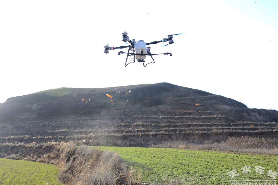 初冬时节,来到清水县松树镇下曹村前湾梁良繁基地,植保无人机正沿着预定航线进行飞防作业,精准均匀地喷洒着药剂。这里是清水县10万亩良种繁育基地的重要组成部分,每一株麦苗都承载着“农业芯片”的重要使命。