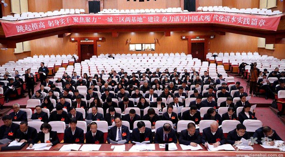 中共清水县委书记李菊霞应邀出席会议并讲话。县委副书记、县长王涛,县人大常委会党组书记、主任马小平,县政协党组书记、主席候选人王炤俊,县政协二级巡视员蔡俊杰、县委副书记董晓明出席会议并在主席台前排就座。