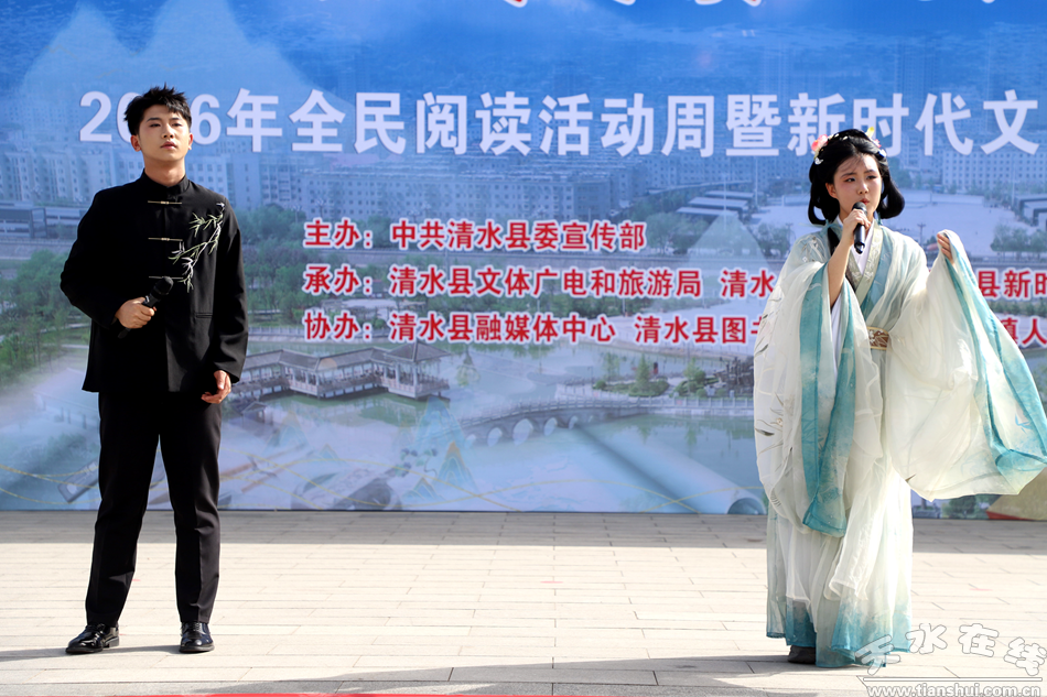 整场演出参演人员涵盖学生、教师、文艺爱好者、基层群众等不同群体,年龄跨度大、参与热情高,既展现了清水县青少年的文化素养与精神风貌,也体现了基层群众对文化生活的美好追求。演出通过艺术化表达,让经典文化“活”起来、让本土文化“亮”起来,让书香气息以更生动、更贴近大众的方式深入人心。