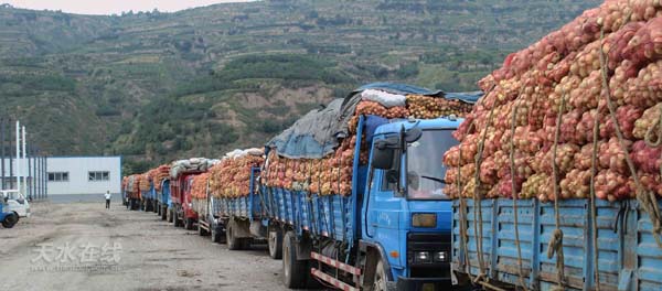 近日,随着苹果的陆续成熟,位于麦积区下曲工业园区的天水长城果汁饮料有限公司院内,等待交售等外品苹果的车辆排起了长龙。