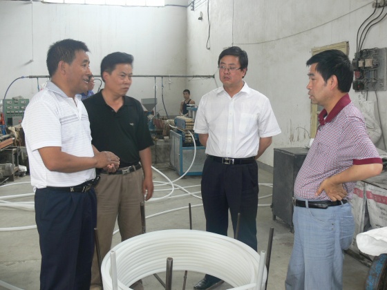 县委副书记、县长王东红,县委常委、副县长李全明深入福雨塑料厂调研
