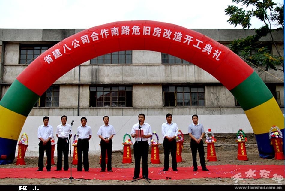 6月16日上午,天水市合作南路西院八公司危旧房改造工程举行了隆重的开工典礼。甘肃建投集团总公司党委副书记、纪委书记张育谦同志、八公司领导,基层各单位的管理人员、机关全体干部以及西院住户代表共计150多人参加了开工仪式。