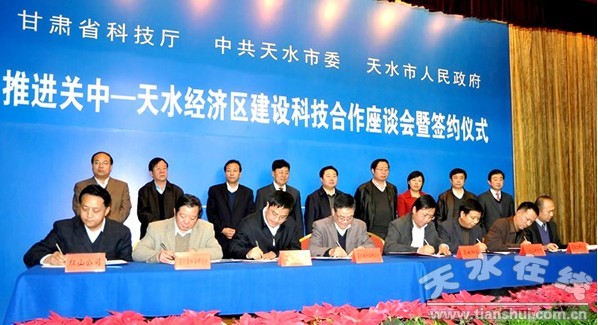 11月21日,甘肃省科技厅和天水市委、市政府在省城兰州共同举办推进关中—天水经济区建设科技合作座谈会暨签约仪式。