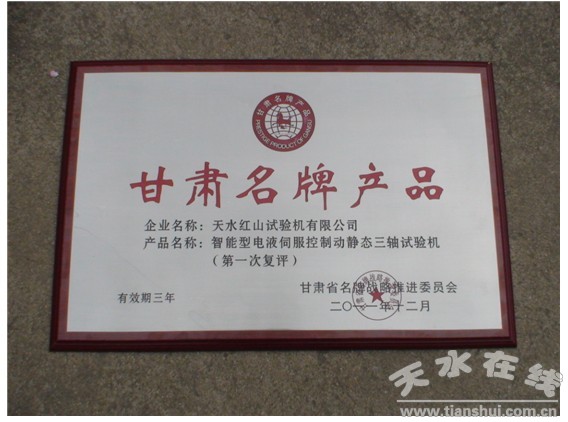 4月19日,中共天水市委、市政府召开全市推进质量振兴工作会议,会议总结了2011年推进质量振兴工作,安排部署今年各项工作任务,表彰了一批获得甘肃名牌产品的企业,天水红山试验机有限公司“智能型电液伺服控制动静态三轴试验机”获得“甘肃名牌产品”荣誉称号。 甘肃名牌产品的评选是甘肃省名牌战略推进委员会,对产品质量要求达到顾客十分满意,并符合国家、行业等法律法规要求的合格、优质产品的高度肯定。 长期以来,天水红山试验机有限公司注重产品质量,大力实施品牌战略,始终坚持“质量第一,安全第一”的工作方针,强化质量控制,公司产品质量有了显著的提升,获得用户好评,“智能型电液伺服控制动静态三轴试验机”顺利通过复评,再度评选为甘肃名牌产品。